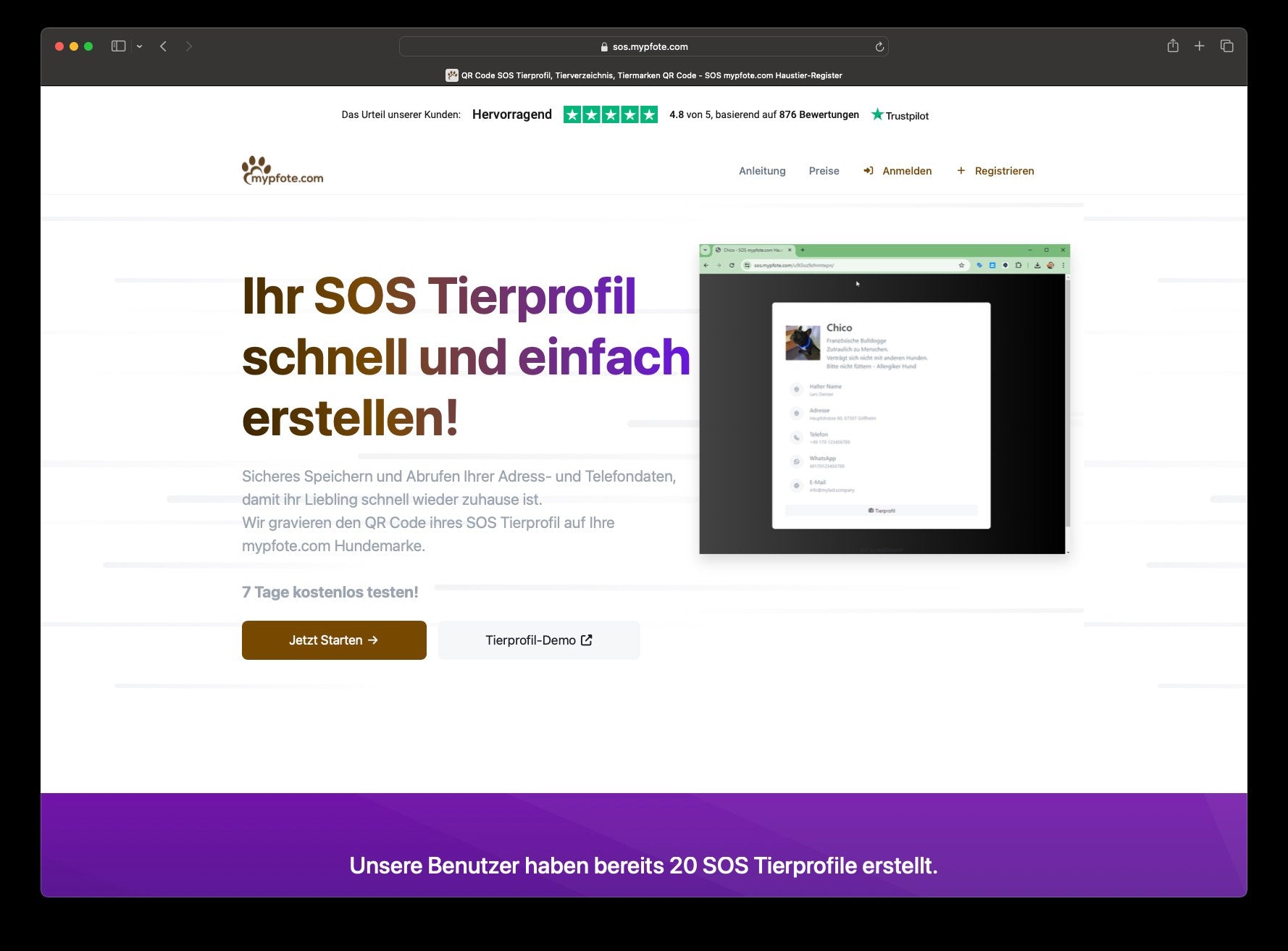 Desde agosto de 2024, ofrecemos un servicio completamente nuevo con nuestro servicio SOS. Lleve su placa de identificación con un perfil detallado de su mascota en línea. No cuesta mucho y siempre puede cambiar su información, como direcciones y números de teléfono, en línea, ¡y las placas de las mascotas se mantienen actualizadas!Más información enal directorio SOS