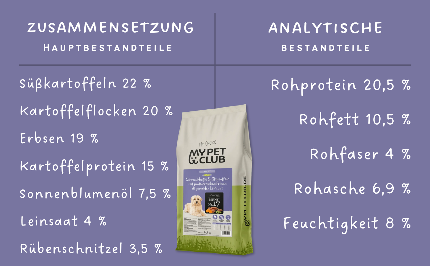 ✔ OHNE GETREIDE: „MyPetClub“ verzichtet auf die Verwendung von Getreide und Soja, da es langfristig zu Verdauungsproblemen oder Allergien kommen kann. Daher nutzen wir kalorienarme, frische Acker-Kartoffeln, die dem Hund wichtige Ballaststoffe, Eiweiß, Vitamine & Mineralstoffe liefern
